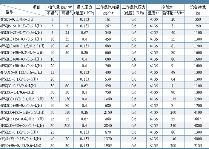 | 產品概述 蒸汽噴射真空泵是一種用水蒸汽作為抽氣介質來獲得真空的裝置。一定壓力的蒸汽通過拉伐爾噴嘴以超音速射出。由壓力能轉化為速度能。在噴嘴出口處由于高速汽流的引射作用形成低壓,工作蒸汽與被抽氣流在混合室進行混合,并進行能量交換,混合氣流在擴壓管內得到減速增壓。由于用戶對真空度要求不同。每臺蒸汽噴射真空泵可由單級或數級串接。級數越多,真空度越高(殘壓越低)。一般吸入壓力與級數的關系如下: