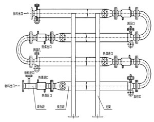 反應器是化學反應工藝中的核心設備,它按結構大致可分管式、釜式、塔式、固定床等,廣泛適用于氣、液、固相的化學混合反應。我公司研制開發的JHF系列強化傳熱反應器內部結構與靜態混合器相仿,能使進入強化傳熱混合反應器的不同液體互相很好地混合,但與常規的靜態混合器內部單元不同,其內部構件不是用板材而是用較細的管材制作,細管內部可以通加熱介質也可以通冷卻介質,所以內部單元不僅能起到了充分混合,而且能提供很大的傳熱比表面積。